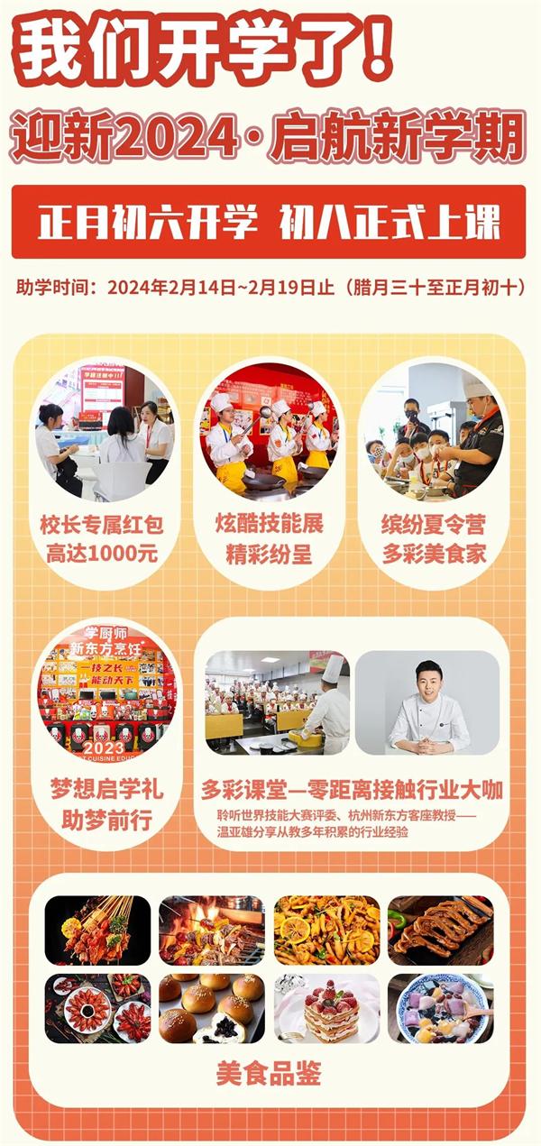 根據(jù)學(xué)校教學(xué)安排,結(jié)合學(xué)校實(shí)際,杭州新東方職業(yè)學(xué)校2024年春季班新生將于2月15日(正月初六)開學(xué)報(bào)到,2月17日(正月初八)正式上課。利用假期時(shí)間,我校已對(duì)各方面進(jìn)行了升級(jí)改造,校園環(huán)境全面優(yōu)化改善,教室設(shè)施設(shè)備重新配置整合。全校教職工已做好全方位準(zhǔn)備,迎接廣大新同學(xué)的到來,讓同學(xué)們有更加舒適的學(xué)習(xí)和生活環(huán)境。